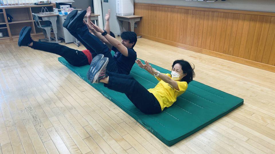 6年生で行っているビデオ会議アプリを使った中継番組ETV(いーテレビ)第4回をおこないました。 今回は体育の先生による「体感体幹」。ストレッチや体幹トレーニングをオンライン上でしました。