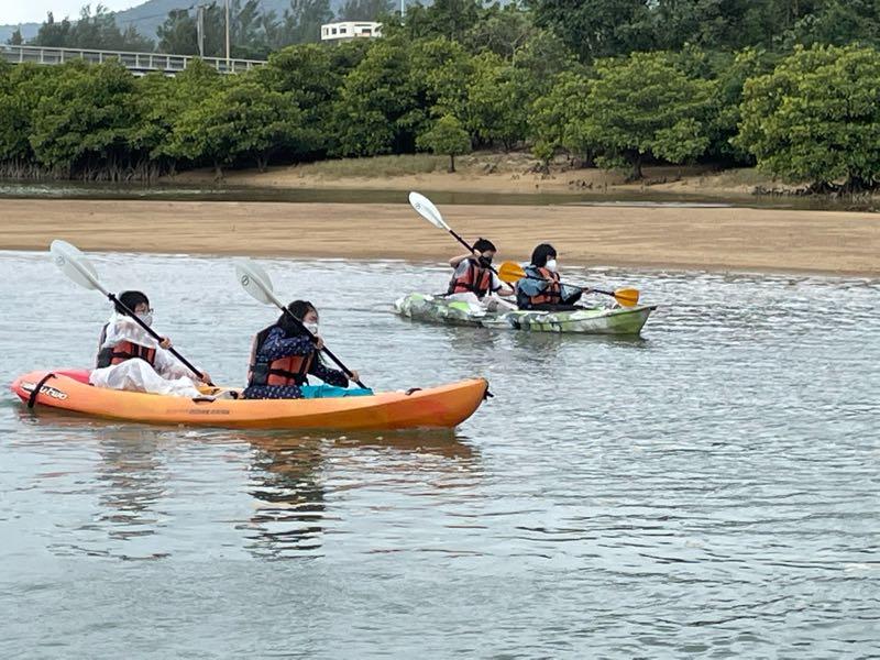 むら咲むらをあとにして、今度は太平洋側に車を走らせ、東村にあるやんばる自然塾にやってきました。ここでは、マングローブの中を散策したりカヌー体験をしたりします。