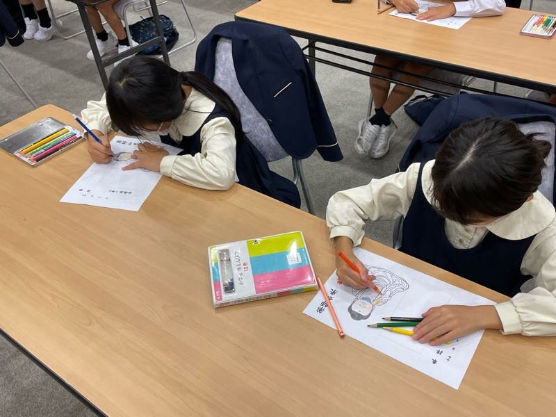 ご本尊の薬師如来様のイラストにそれぞれが色を塗っていきます。心を込めてていねいに塗っていきましょう。