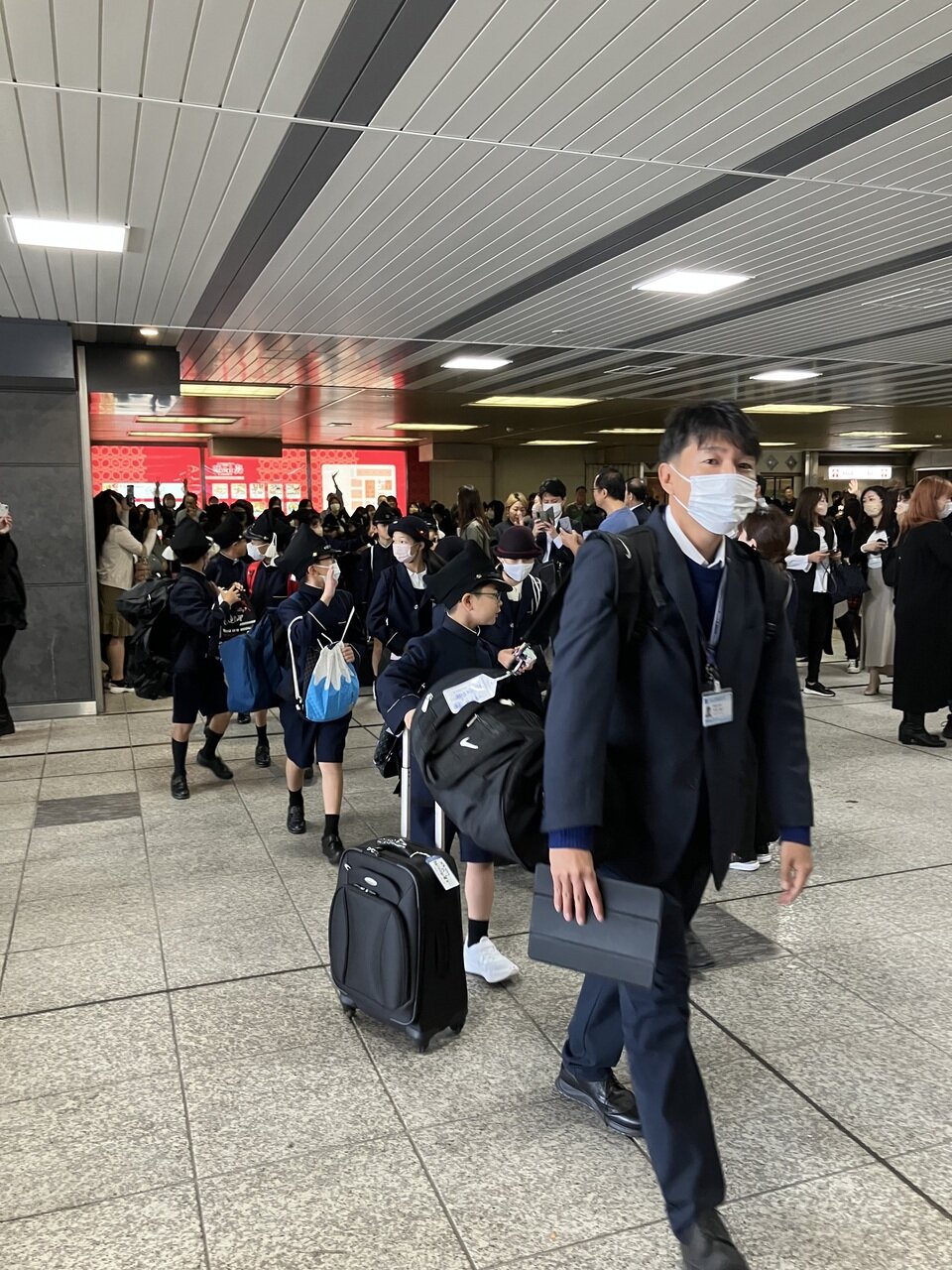 おはようございます。いよいよ東京に向けての出発の日を迎えました。集合場所である新大阪駅には、緊張からか表情が硬い子もいますが、ほとんどの児童はこれからの旅行を楽しみにしている気持ちからか、笑顔が多く見られました。充実した4日間にできる様、みんなで協力して頑張ってきます。