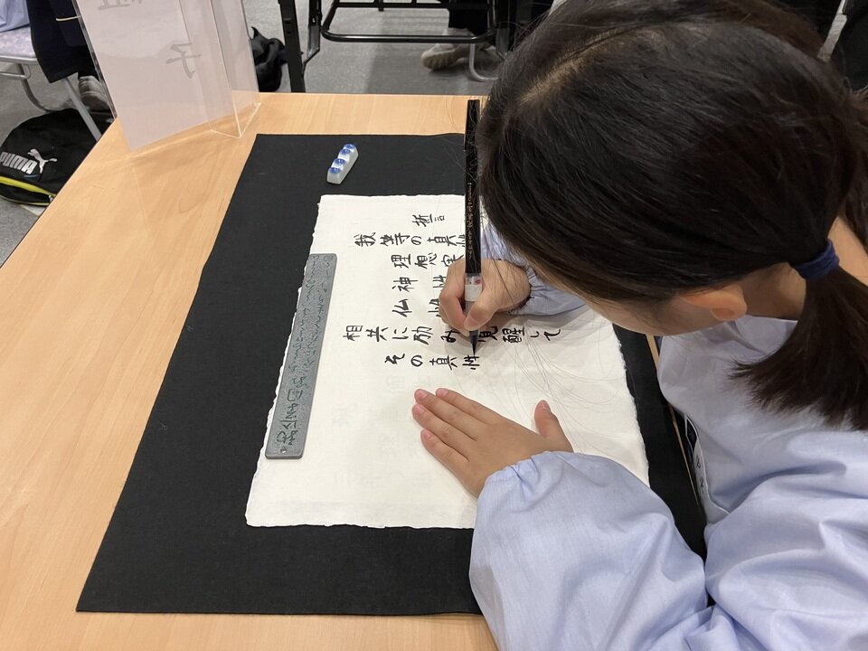 世界にたった1枚だけの特別な和紙に、その意味を考えながら書き写していきます。