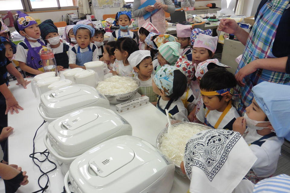 今日は、待ちに待ったキッズクッキングです。お気に入りのエプロンを着て子どもたちは大喜び♪野菜を洗って、切ったり、ちぎったり!!年長さんは3年間してきたのでさすがです!!年中さんは初めての包丁。ドキドキしたね!年少は初めてのクッキング。ワクワクがいっぱい。みんなで頑張って作ったご飯はやっぱり美味しいね♪