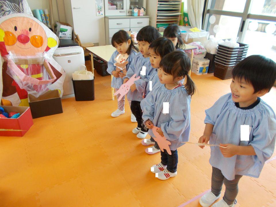 つぼみ組全てのクラスが終わりました。お家の人に温かく見守って頂き、子ども達は大きく成長しました。ありがとうございました。最終日は参観でした。身支度から自由遊び、「あ~そ~ぼ」の劇遊びを見て頂き、お家の人とお製作をしました。一年間みんなと一緒にいろんな事をしましたね。3学期はあっという間でしたがお友達と楽しみ、出来ることも増えて自信たっぷりの表情や姿が見られました。