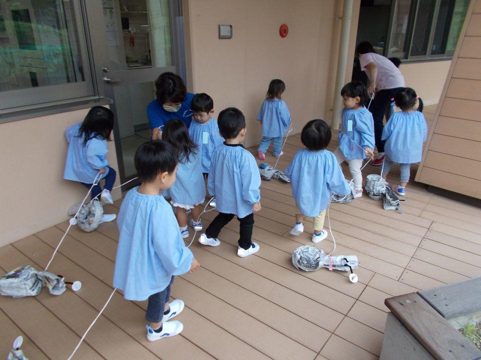 かたつむりを作ってお散歩しましたよ。つむちゃん、かたちゃんはゆっくりが好きだから歩いていこうね。