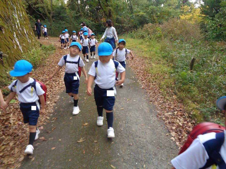 ぬかた園地でお弁当を食べて、たくさんの落ち葉であそびました!!ゴールまで全員元気に登りきり達成感を味わうことができました。