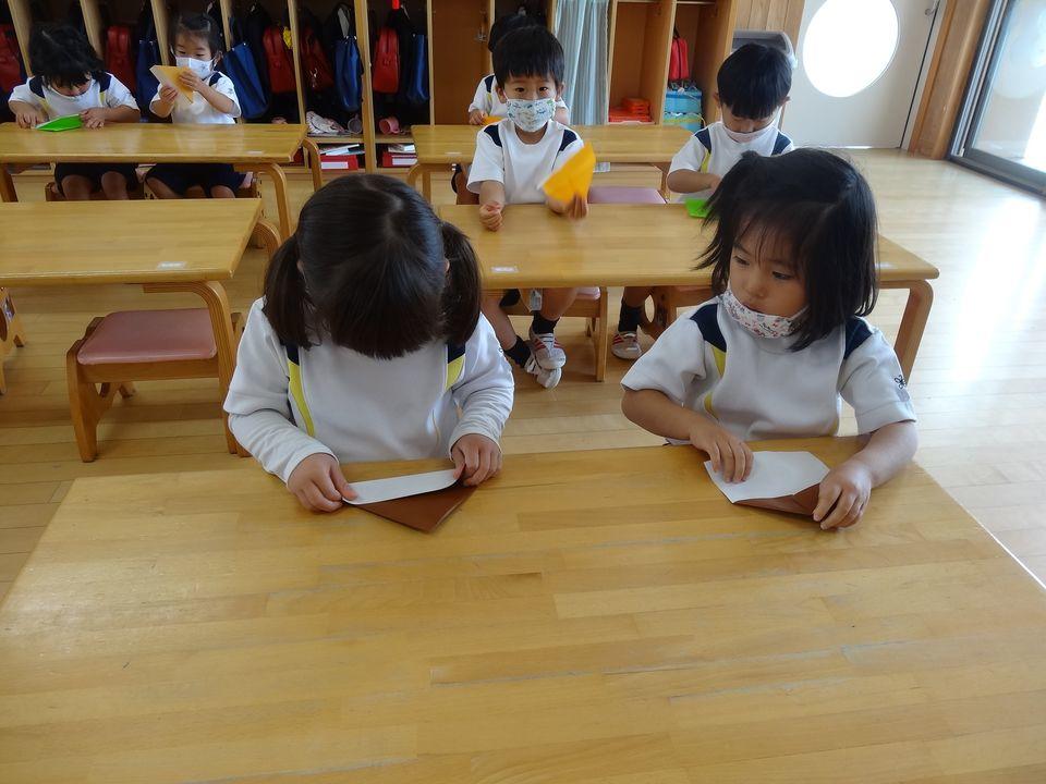 紐通しをしました。シールを貼ったり指先を使う製作をしました。