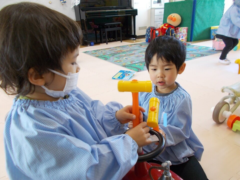 今日も協力して穴を掘り、工事ごっこをしていました。