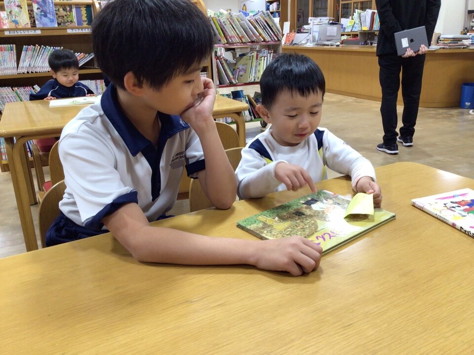 小学校の図書室でたくさん絵本を読んでもらいました!