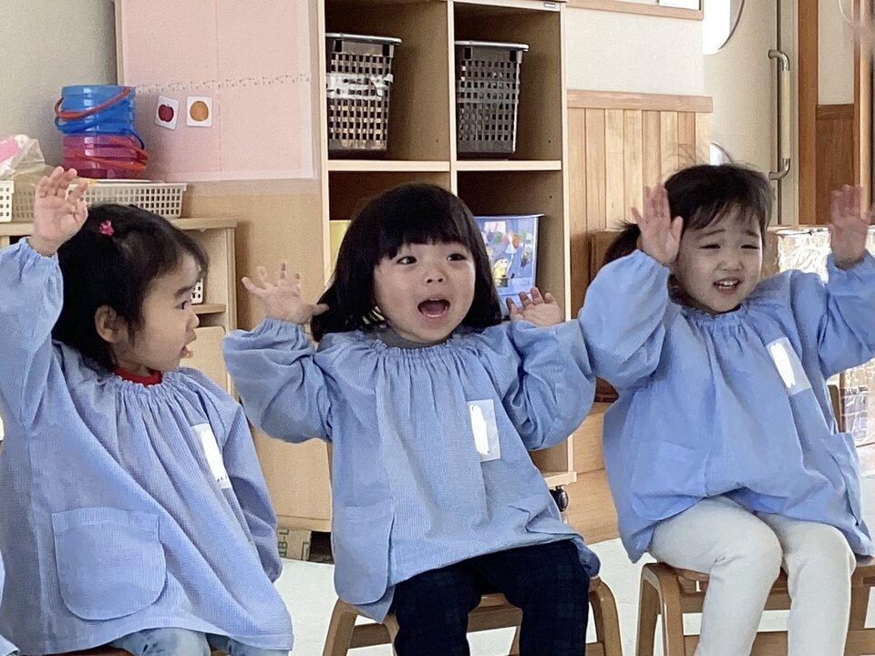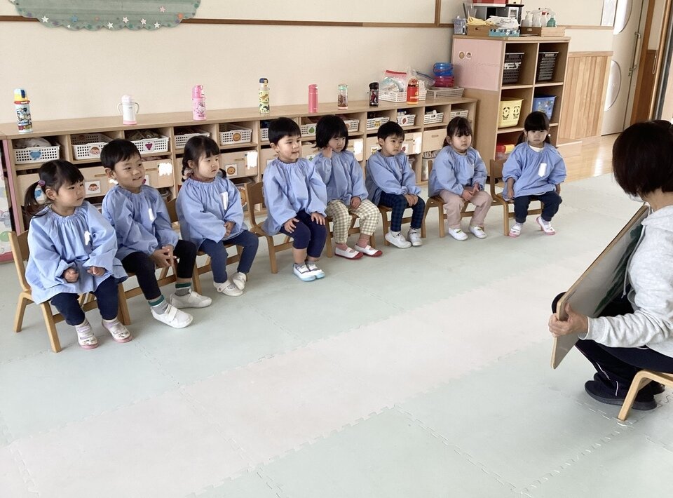 先週「おおきなかぶ」の絵本で聞いたお話を、今日はホワイトボードシアターで。株を抜くときのかけ声を大きな声で言いながら、思わず腕にも力が入ります。