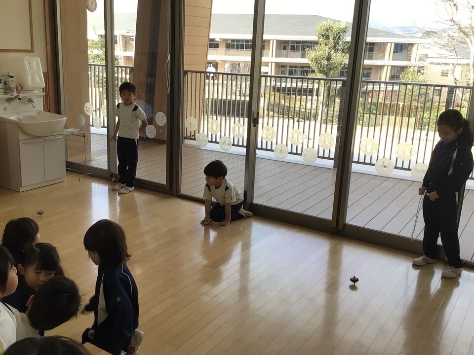 新しい年も始まり、今日はカルタ大会・こま回し大会&お正月遊びをしました。