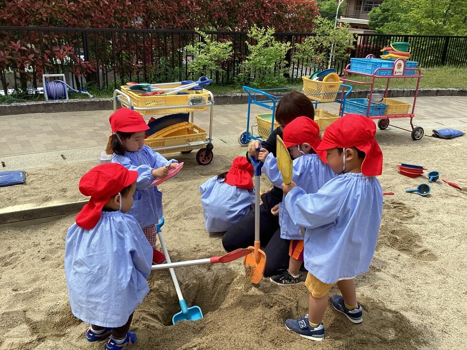 気温も上がり青空が広がった今日は、みんなでたくさん水遊びをしました。