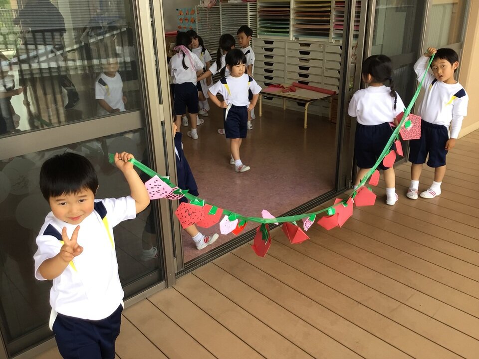 今日のエンジョイタイムは、年中さんが折り紙の先生になってくれました。