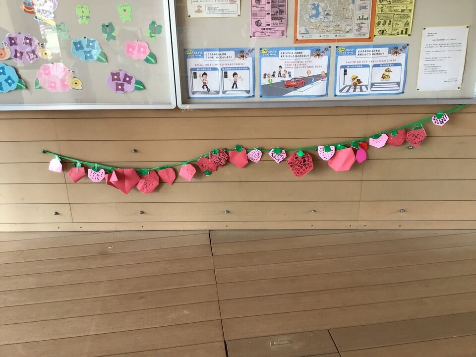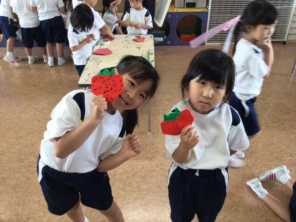 年長さんに折り紙でいちごの折り方を丁寧に教えてくれました。